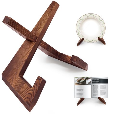 Support de livre et d'assiettes en bois naturel