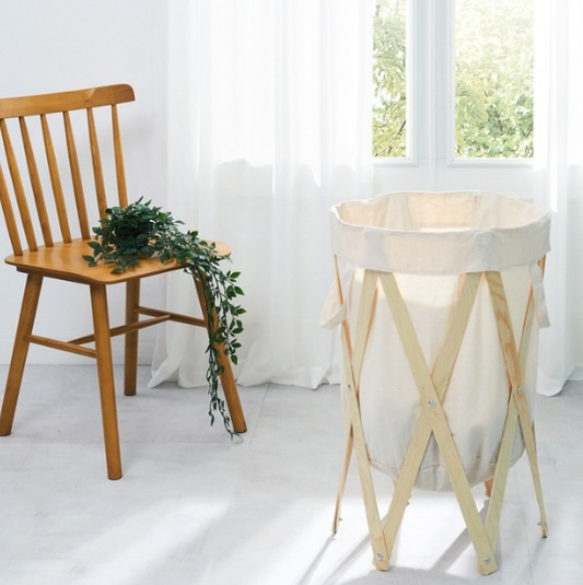 Panier à Linge en Bois & Tissu – Design Chic et Pliable